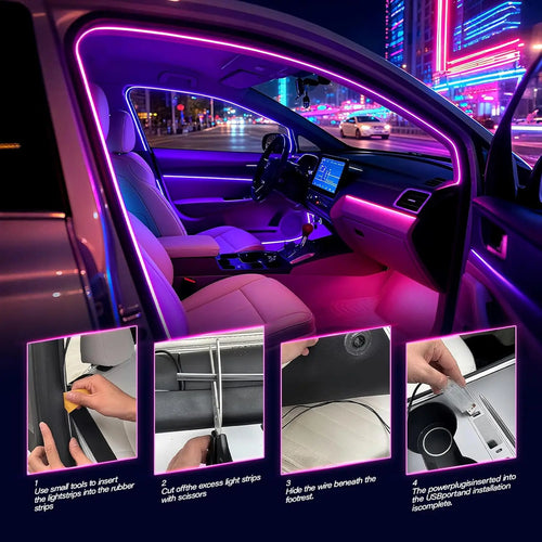 Car Door Frame LED Light Strip 64 Colors Music Sync, APP Control USB Ambient Light Interior Accessory Suitable for Most Cars